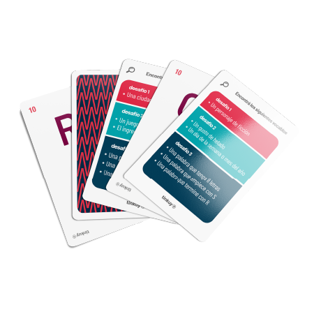 Objetivo del juego: formar palabras combinando las letras y sílabas disponibles, utilizando solo una opción por carta y respondiendo a diferentes desafíos.